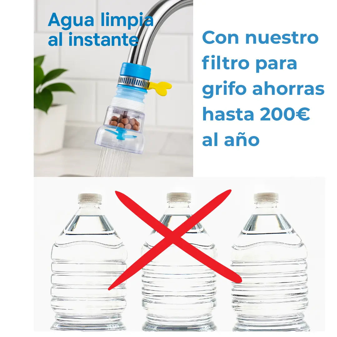 ¿Cansado de gastar dinero en agua embotellada? Con nuestro filtro para grifo ahorras hasta 200€ al año, y obtienes agua pura para cocinar y beber. ¡Di adiós a las botellas y hola a la comodidad!